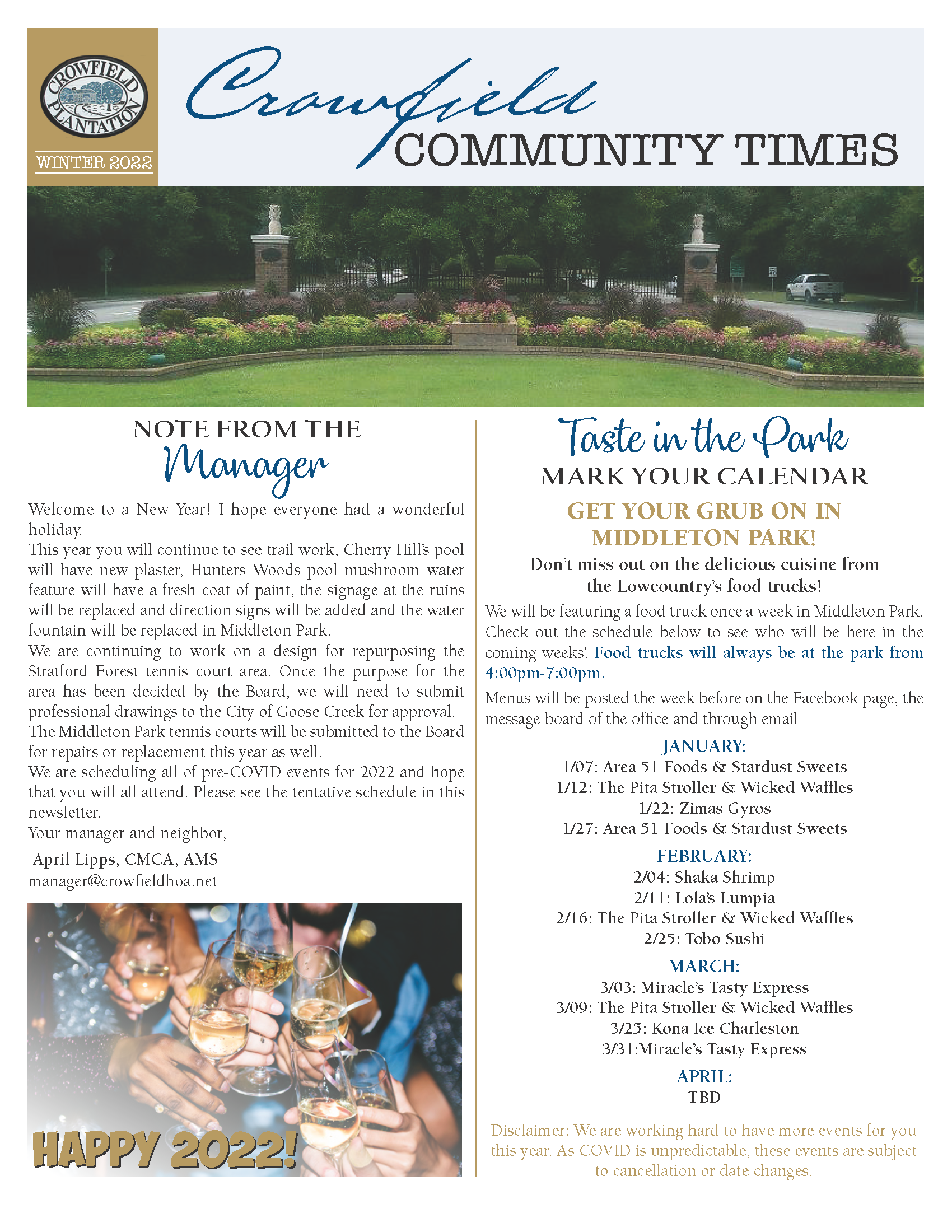 Full 2022 Winter Newsletter I managed and designed together. One of the two newsletters for which I was responsible for creating and distributing the newsletter as physical mail and as an email blast.